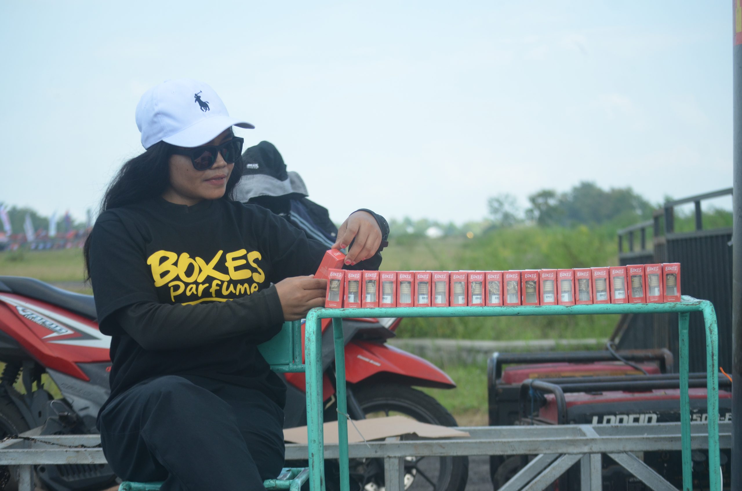 Berlokasi di pintu utama sirkuit Lanud Gading, Wonosari, Sabtu (12/04), Perwakilan Boxes Parfume tampak membagikan produknya bagi pembalap dan pengunjung sejak pagi. Mereka yang mampir tidak hanya bisa membawa pulang pewangi mobil secara cuma-cuma, tapi juga berkesempatan mencoba berbagai varian aroma khas dari Boxes yang dikenal awet dan elegan.