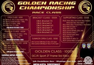 Informasi pendaftaran dan detail teknis dapat diakses melalui akun Instagram resmi Golden Racing Championship.
