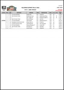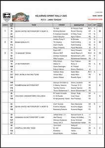 Racing Indonesia – 2 Juni 2025 Berikut adalah hasil Kejurnas Sprint Rally 2025 Putaran 3 Sirkuit POJ City Semarang
