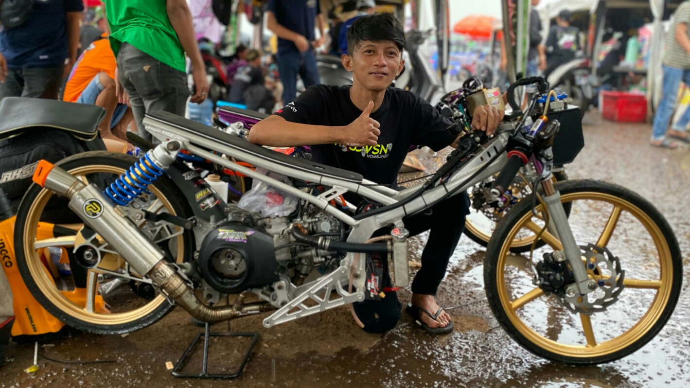 “Allhamdulillah kali ini dikasih podium terhormat mas, ini merupakan kedua kali nya saya mengendarai motor garapan mas Agus Moon Racing . Untuk karakternya sendiri motor ini memiliki power cukup baik , maka dari itu kuncinya tidak lepas dari awal start hingga 50 meter di awal, sedikit perlu konsentrasi agar motor tidak standing maupun sprint yang disebabkan oleh power motor yang besar ” Jawab Eza Yuda Prawira pembalap INK Project Moon Racing .